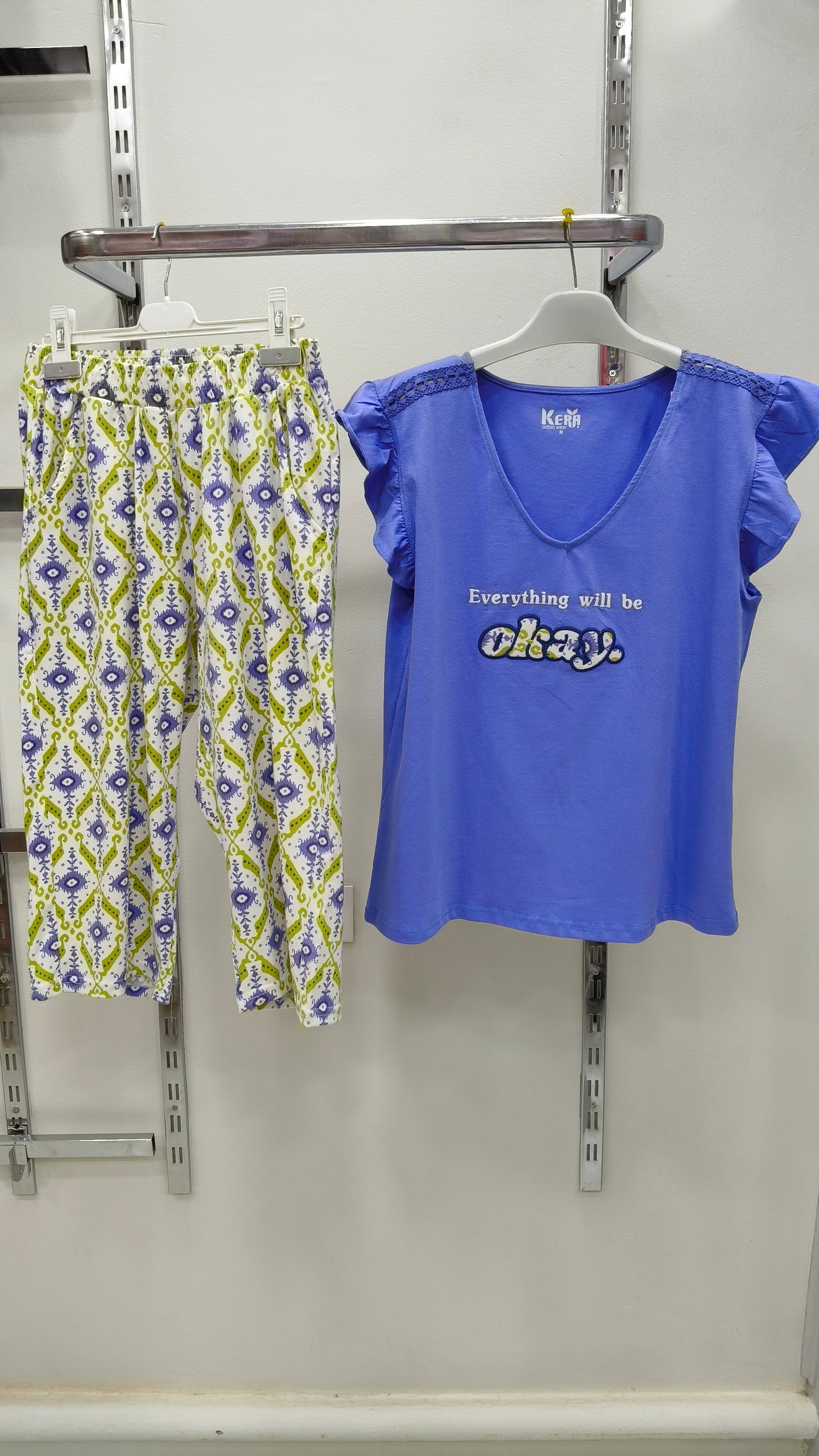 استمتعي بإطلالة صيفية منعشة ومريحة مع هذا الطقم المميز. الطقم مصنوع من القطن الناعم لتمنحك شعورًا بالانتعاش والراحة. يتميز بتصميم عصري يجمع بين التي شيرت الكت ذو الألوان الزاهية والبرمودا بنقوش عصرية، مما يجعله مثاليًا للاسترخاء في المنزل.